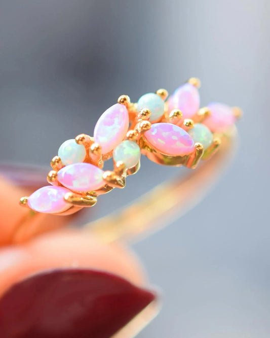 Rose Gold-Plated Rainbow Moonstone & Topaz Dancing Fairy Ring Set