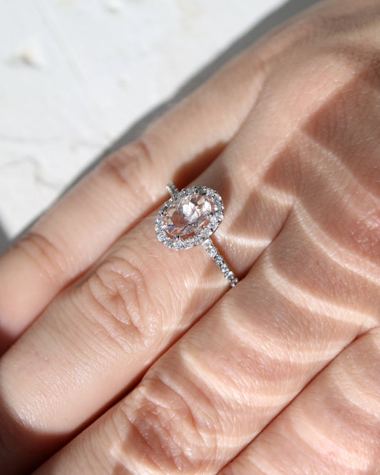 9kt gold Eternal Morganite and Diamond Halo Ring