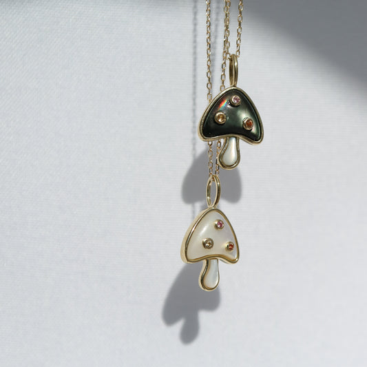 9kt Mother of Pearl, Sapphire & Aquamarine Mushroom Pendant