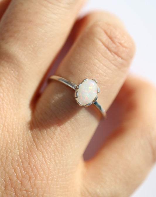 9kt White Gold Opal Crown Ring
