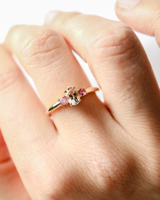 9kt gold Morganite and Pink Tourmaline Ballerina Ring