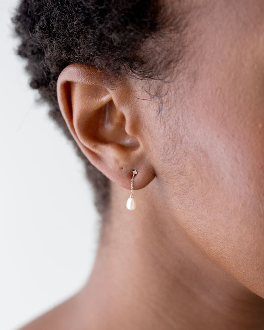 14kt Gold Pearl and Sapphire Droplet Studs